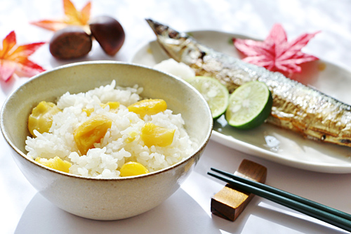 今日は、秋の味覚の代表格、サンマと栗を主役に、